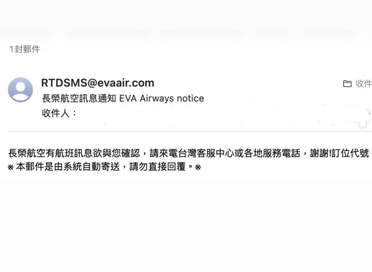 過了兩週無消無息的日子,我心裡想著或許到最後一刻,也就是回程當天才能知道有沒有候補上了,畢竟我這麼晚才開始候補,結果又是一個平凡無奇的上午,長榮寄了一封神秘的信件到我的信箱: