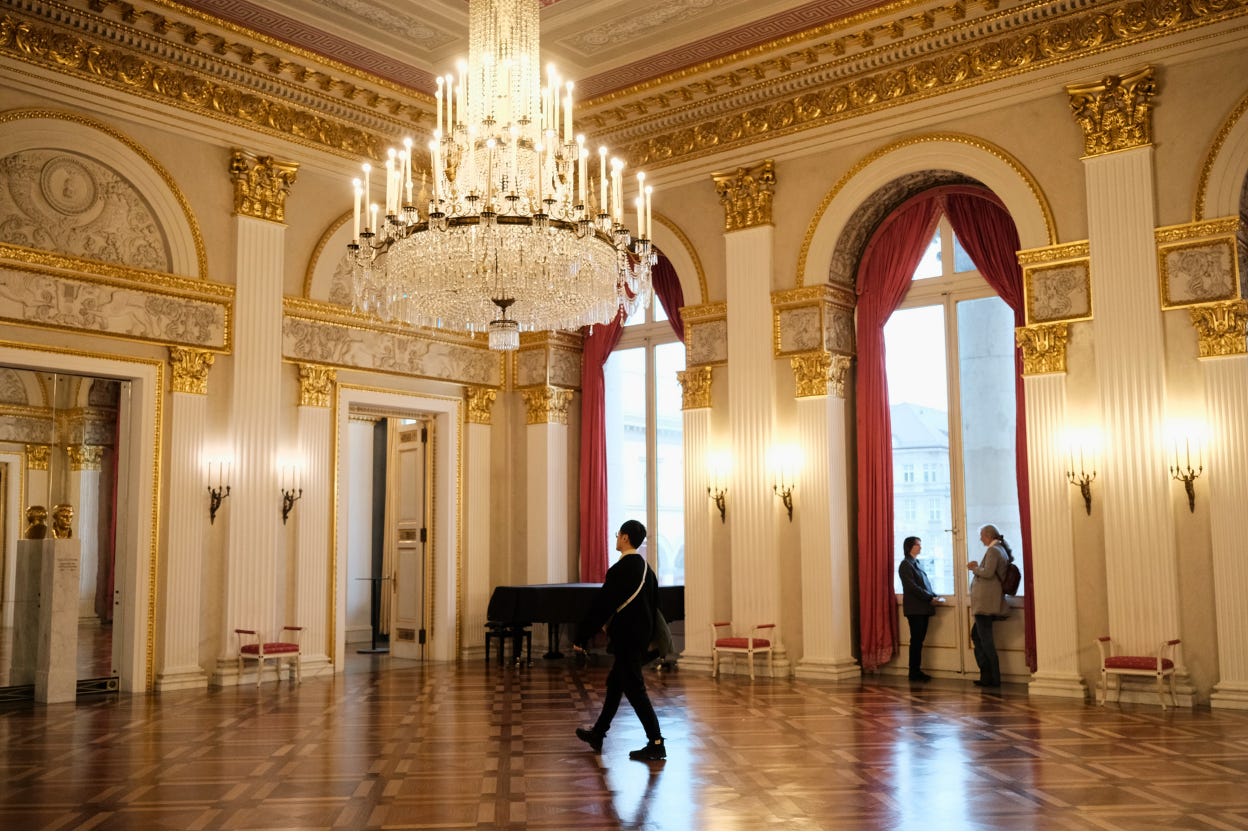 演出當天,我們下午還專程回Airbnb停車和換上合適的衣服,再搭乘UBER到老城區的歌劇院,晚上19:30的演出,歌劇院一個小時前才會開門,我們大概18:15左右到,看到那些穿著特別正式的,就是在等歌劇院開門的,大部分的人都是穿黑色居多,男士幾乎都是穿西裝,輕鬆一點也有襯衫和擦亮的皮鞋 ; 女士就是洋裝配上高跟鞋,因為歌劇院內很溫暖,大衣內直接穿短袖或平口洋裝也是有的!