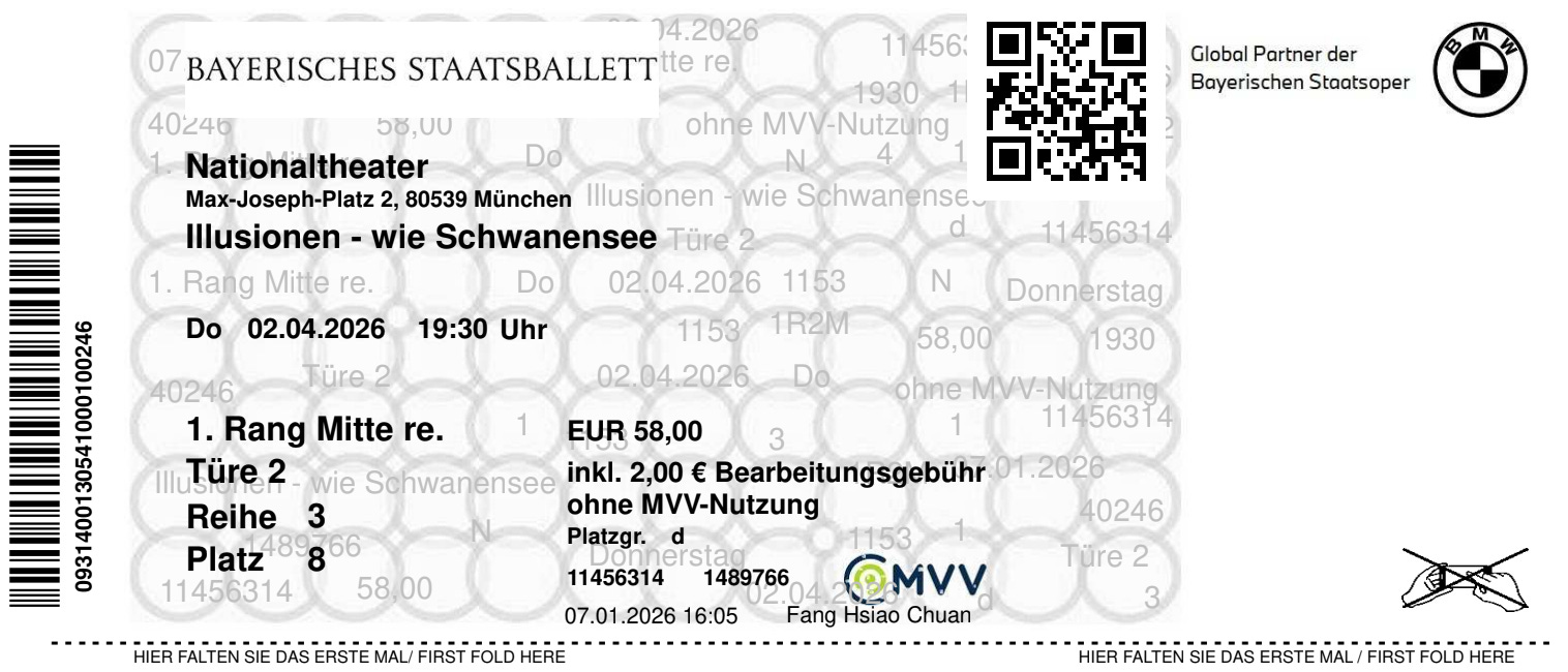 如果你也想在旅程中安排類似的演出觀賞體驗,建議要提前半年到一年確認演出場次,再訂機票,像是我看的這部《Illusionen – wie Schwanensee》(幻影—如天鵝湖)四月只有演一場、五月三場,接著就要等十月了,場次其實沒有很密集,但值得專程安排!