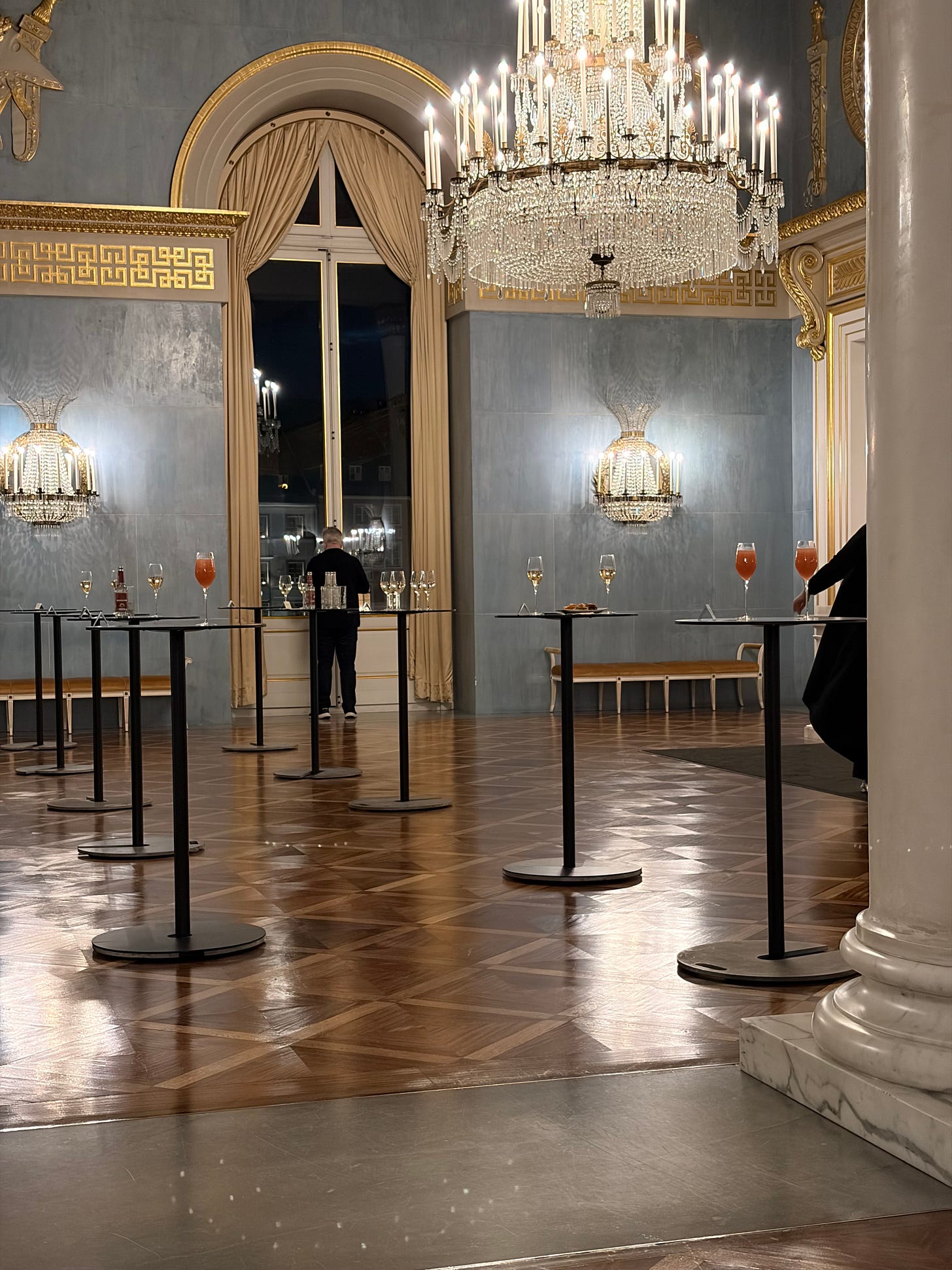18:30進場後,一直到節目開演前,就是社交的重要環節了,整個歌劇院內有多個開放式的點餐吧台,可以點杯香檳和小食,在節目開演前先稍微墊個肚子,順便和同行的、巧遇的朋友聊天寒暄。